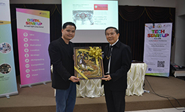 อาจารย์เสวตร์ ตาจุมปา ผู้ช่วยรองอธิการบดี ให้การต้อนรับดร.กาวกัง ฮาน(G...