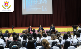 อาจารย์ณรงค์ ชวสินธุ์ อธิการบดี กล่าวต้อนรับ และให้โอวาท และรับฟัง Talk and Share โดย อาจารย์ชุติมา ชวสินธุ์ รองอธิการบดีและ อาจารย์ ดร.สุรชัย สานติสุขรัตน์ รองอธิการบดี