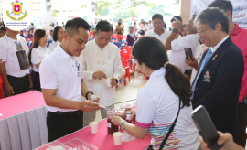 Associate Professor Dr.Guo Hui คณบดีวิทยาลัยนวัตกรรม มหาวิทยาลัยนอร์ท-เชียงใหม่ ร่วมจัดบูธกิจกรรมวันต่อต้านยาเสพติดโลก ภายใต้กรอบแนวคิด Stop Drufs, Start Power สร้างพลังไทย หยุดภัยยาเสพติด ได้รับเกียรติจาก นายจักรินทร์ สิรินทรภูมิ นายอำเภอหางดง จังหวัดเชียงใหม่ เข้าเยี่ยมชมบูธ